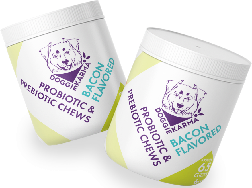 Doggie Karma's Probiotic Chews contains all the essential nutrients needed to support your dog's gut health while your dog enjoys a delicious bacon-flavored treat.