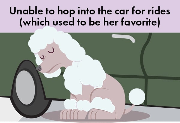 • Hesitant to go up stairs or jump onto things like the couch.